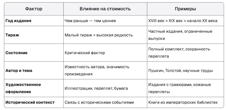 Дореволюционные книги — это уникальный сегмент антикварного рынка, сочетающий культурную, историческую и инвестиционную ценность. Наиболее ценятся книги XVIII века, прижизненные издания классиков русской литературы, научные труды и издания с автографами.