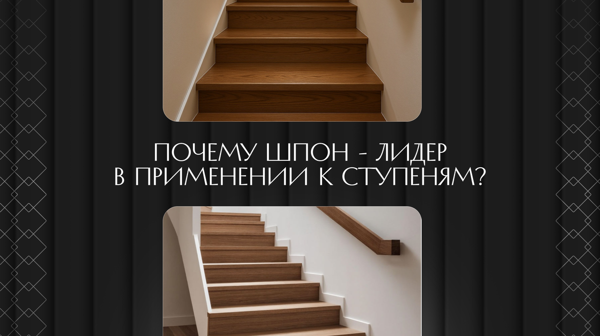 Многие списывают это на плохую работу мастеров, но причина чаще всего в физике самого материала. Массив дерева — это «живой» блок, который постоянно расширяется и сужается от влажности. Можно ли получить красоту натурального дуба без этих технических сложностей? Разбираемся в деталях. Если вы посмотрите на ступени из обычного клееного массива, то заметите, что они собраны из небольших брусков разного оттенка. Профессионалы называют это «соломкой». Такой рисунок дробит пространство и делает интерьер дешевле. Шпонированные ступени создаются иначе. На стабильное инженерное основание наклеивается плотный слой натурального дерева. В результате поверхность выглядит как монолитный срез. Вы видите единый, кра