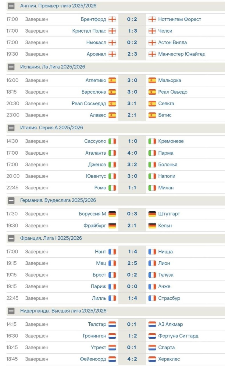 Итоги воскресенья