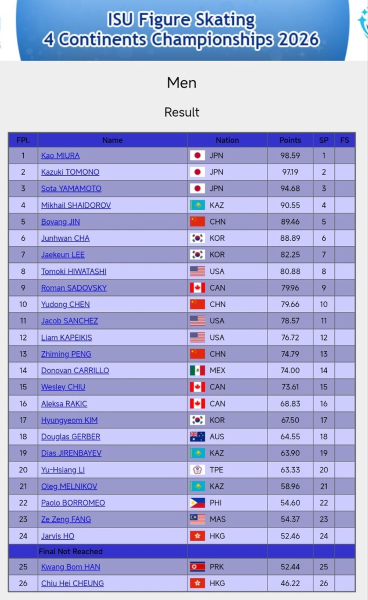 Так же, как и у девушек, все три места занимают представители страны восходящего солнца. По уровню прокатов выделился, лично для меня, Као Миура - уровень Мастера; Кадзуки Томоно и Сота Ямамото - подмастерья; Боян Цзинь и Михаил Шайдоров - ученики.