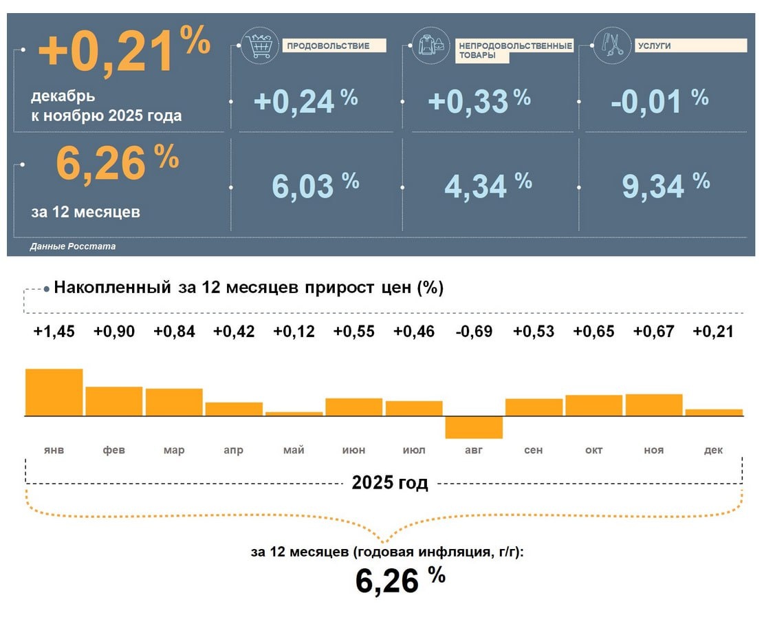 Π ΠΏΠΎΡΠ»Π΅Π΄Π½Π΅ΠΌ ΠΌΠ΅ΡΡΡΠ΅ 2025 Π³ΠΎΠ΄Π° ΡΡΠΎΠ²Π΅Π½Ρ ΠΈΠ½ΡΠ»ΡΡΠΈΠΈ Π² Π£Π΄ΠΌΡΡΡΠΈΠΈ ΠΏΠΎΠ²ΡΡΠΈΠ»ΡΡ Π½Π° 0,21% ΠΏΠΎ ΡΡΠ°Π²Π½Π΅Π½ΠΈΡ Ρ Π½ΠΎΡΠ±ΡΠ΅ΠΌ, Π΄ΠΎ 6,26% (ΡΡΠ΅Π΄Π½ΡΡ ΠΈΠ½ΡΠ»ΡΡΠΈΡ Π² Π ΠΎΡΡΠΈΠΈ β 5,59%), ΡΠΎΠΎΠ±ΡΠ°Π΅Ρ ΠΎΡΠ΄Π΅Π»Π΅Π½ΠΈΠ΅ Π¦Π΅Π½ΡΡΠΎΠ±Π°Π½ΠΊΠ° Π ΠΎΡΡΠΈΠΈ ΠΏΠΎ Π£Π΄ΠΌΡΡΡΠΈΠΈ. π₯Π Π΄Π΅ΠΊΠ°Π±ΡΠ΅ Π² ΡΠ΅ΡΠΏΡΠ±Π»ΠΈΠΊΠ΅ ΡΠΌΠ΅ΡΠ΅Π½Π½ΠΎ ΠΏΠΎΠ΄ΠΎΡΠΎΠΆΠ°Π»ΠΈ Π½Π΅ΠΏΡΠΎΠ΄ΠΎΠ²ΠΎΠ»ΡΡΡΠ²Π΅Π½Π½ΡΠ΅ ΡΠΎΠ²Π°ΡΡ ΠΈ ΠΏΡΠΎΠ΄ΡΠΊΡΡ ΠΏΠΈΡΠ°Π½ΠΈΡ, ΡΠ΅Π½Ρ Π½Π° ΡΡΠ»ΡΠ³ΠΈ ΠΏΡΠ°ΠΊΡΠΈΡΠ΅ΡΠΊΠΈ Π½Π΅ ΠΈΠ·ΠΌΠ΅Π½ΠΈΠ»ΠΈΡΡ. ΠΠΎΠ»ΡΡΠ΅ Π²ΡΠ΅Π³ΠΎ Π²ΡΡΠΎΡΠ»ΠΈ ΡΠ΅Π½Ρ Π½Π° ΠΊΡΡΠΈΠ½ΡΠ΅ ΡΠΉΡΠ°, ΠΊΠΎΡΠ΅, ΠΏΡΠΈ ΡΡΠΎΠΌ ΠΏΠΎΠ΄Π΅ΡΠ΅Π²Π΅Π» ΡΠ°Ρ