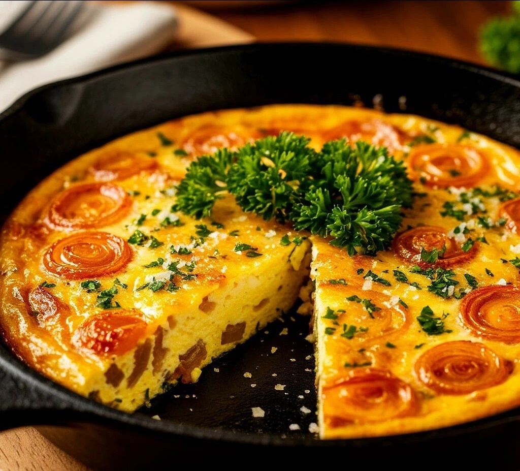 СОВЕТ ОТ МАРУСИ: 🐾 Не торопите лук!Долгая и медленная карамелизация — это душа блюда. Если лук начнёт приставать ко дну, можно добавить ложку воды. И не перепеките фриттату в духовке — она должна оставаться слегка влажной и нежной внутри.