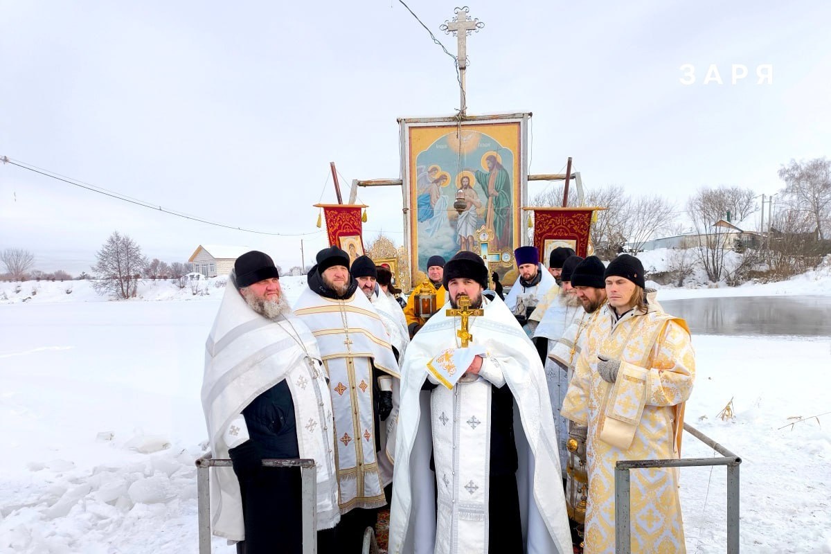 В полдень крестным ходом «на Иордань» к купели у Стрелецкого моста направились священнослужители и прихожане благочиния со свечами и хоругвями в руках. В молитвах