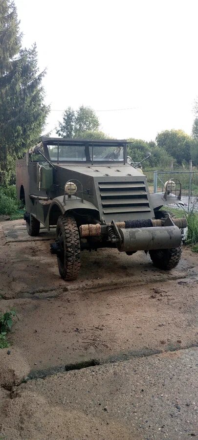 За раритетный колесный автомобиль продавец просит 2 млн рублей. Машина выкрашена в зеленый цвет, оборудована лебедкой, сзади есть бак, а на обоих бортах канистры. "Разведывательная машина M3 (Scout Car M3) — легкий многоцелевой бронетранспортер США периода Второй мировой войны. Скаут М3. Полный привод на ходу, доки, броня", -- говорится в объявлении. M3 Scout Car — американский бронеавтомобиль, применявшийся во время Второй мировой войны. Также был известен как White Scout Car по названию компании-производителя White Motor Company. Машина выполняла различные функции: использовалась для патрулирования, разведки, в качестве командного пункта, санитарного транспорта и тягача для артиллерии. Бронетранспортер был оборудован карбюраторным 6-цилиндровым двигателем Hercules L объемом 4,6 л, мощность которого составляла 75 л.с. Корпус имел бронирование: лобовое — 12,7 мм, кормовое — 7,62 мм, бортовое — 6,35 мм, что обеспечивало защиту от пуль и мелких осколков. Автомобили поставлялись в Красную