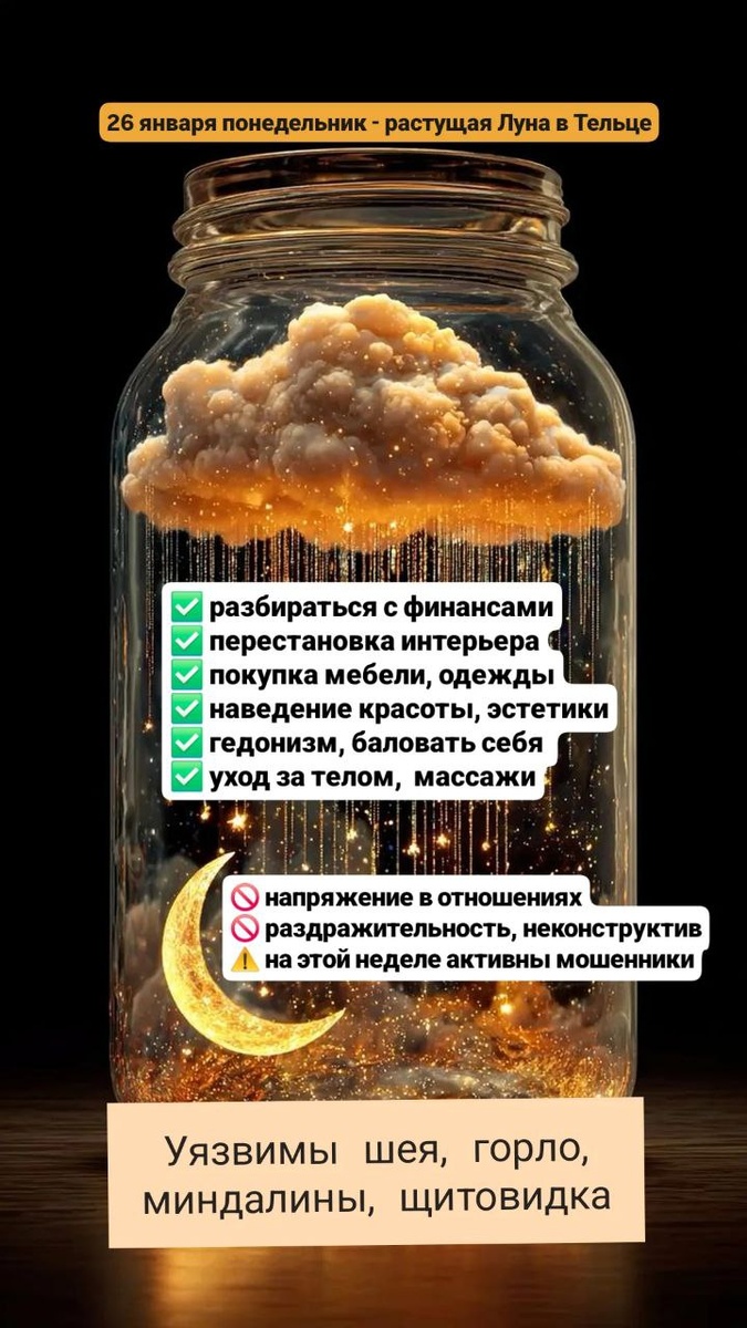 ! Напряжение на небе держится с ночи, но к вечеру уходит. К вечеру даже будет аспект удачи 💫 Напоминание дня: Позволяй себе жить по-новому #прогноз #прогноздня #атмосферадня #прогноз2026