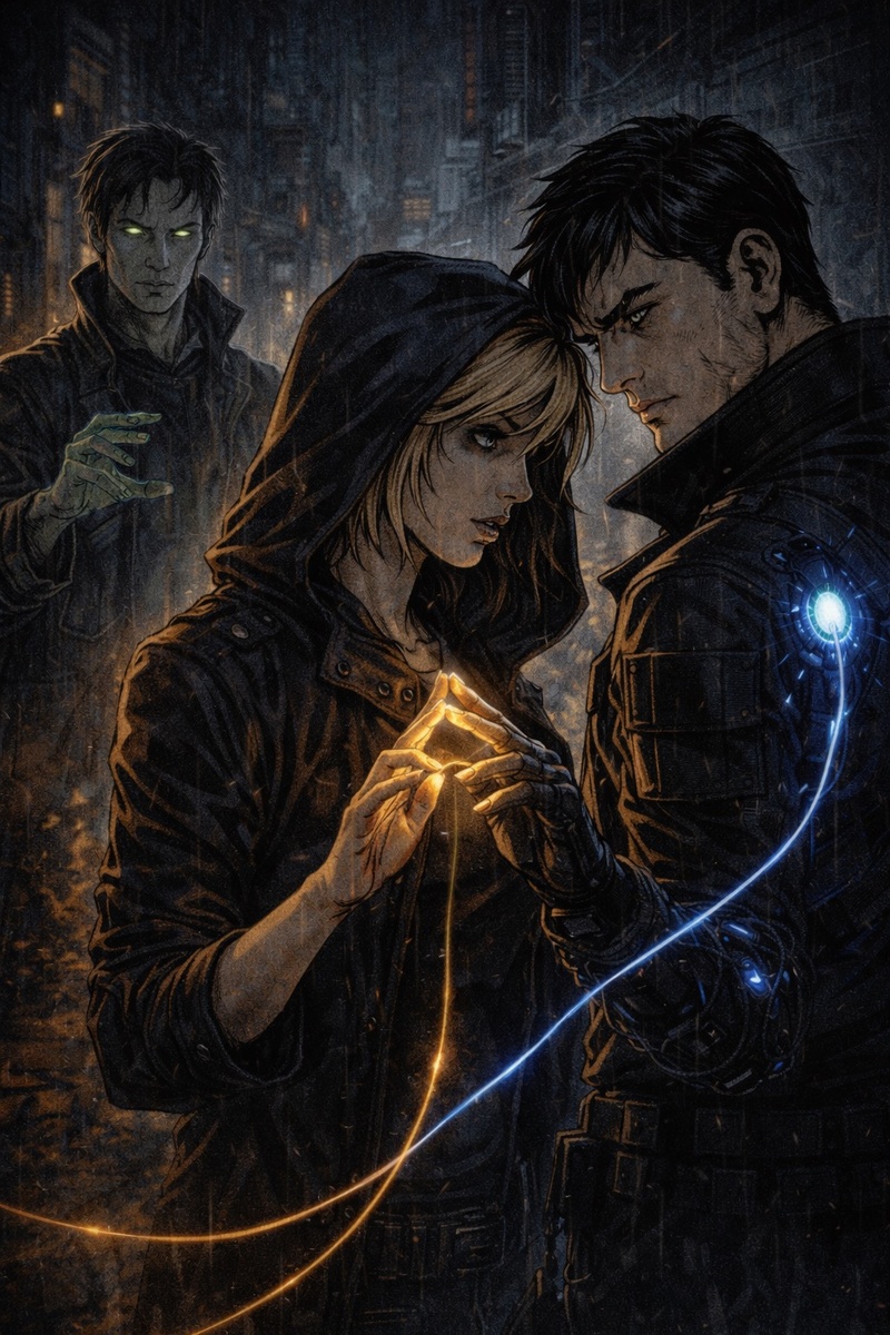 — Чувствую, — ответила Аэлин. — Она… зовёт тебя ко мне. Каэл скрестил взгляд с ней. В его глазах был страх — и что-то новое, почти человеческое: желание быть рядом, несмотря на приказ и опасность. И тогда появился он. В темном углу, между сломанными рекламными голограммами, возник мутант.