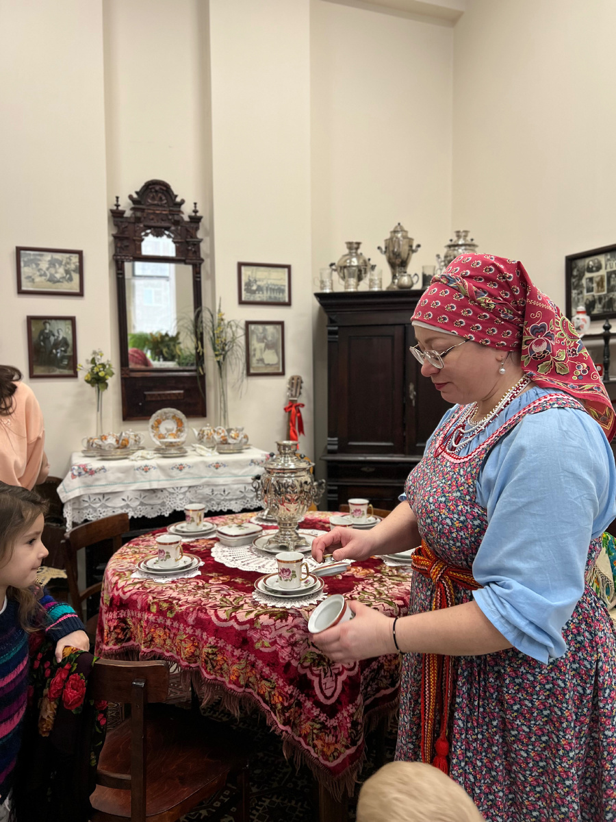 Она посвящена культуре русского чаепития — той самой, с самоварами, заварочными чайниками, подстаканниками и тёплой атмосферой неспешных разговоров.