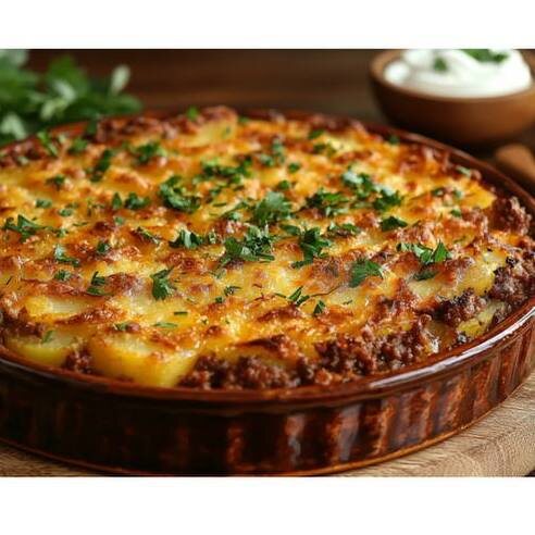 · Ориентируйтесь на внешний вид: сыр должен расплавиться, покрыться золотистой корочкой, а сама запеканка — хорошо пропечься. Проверьте зубочисткой: она должна легко входить в слой картофеля.