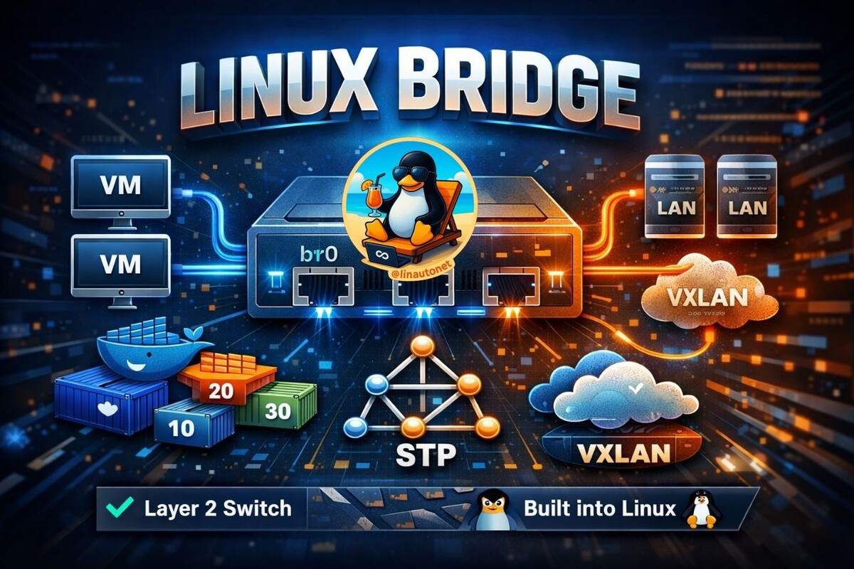 Linux-мост — это модуль ядра, который работает как сетевой коммутатор, перенаправляя пакеты между подключёнными к нему интерфейсами. Обычно он используется для перенаправления пакетов на маршрутизаторах, шлюзах или между виртуальными машинами и сетевыми пространствами имён на хосте.