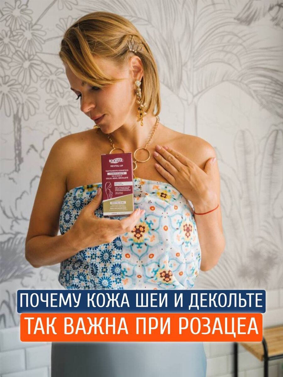 🤷🏼♀️ Если их игнорировать, кожные процессы редко остаются «локальными» Это шея и декольте При отсутствии регулярного ухода за кожей в этих мастах розацеа протекает тяжелее: — Усиливается сосудистая реактивность, — Дольше сохраняется воспаление, — Хуже восстанавливается кожный барьер Сегодня всё чаще пациенты обращаются с атипичными формами розацеа, при которых поражается не только лицо, но и область шеи и декольте Поэтому по показаниям я назначаю уход за этими зонами, чтобы даже дома была надёжная поддержка физиологического состояния кожи 🌿 Revital-Up (Iodase) - тонизирующее средство для шеи, груди и зоны декольте, которое подходит в том числе для зрелой кожи и кожи с признаками снижения плотности Формула Revital-Up работает против гравитационных изменений за счёт стимуляции синтеза коллагена и эластина Это помогает: ✅ Повысить упругость кожи ✅ Улучшить структуру дермы ✅ Поддержать кожный каркас в зонах повышенной уязвимости При регулярном применении кожа становится более у
