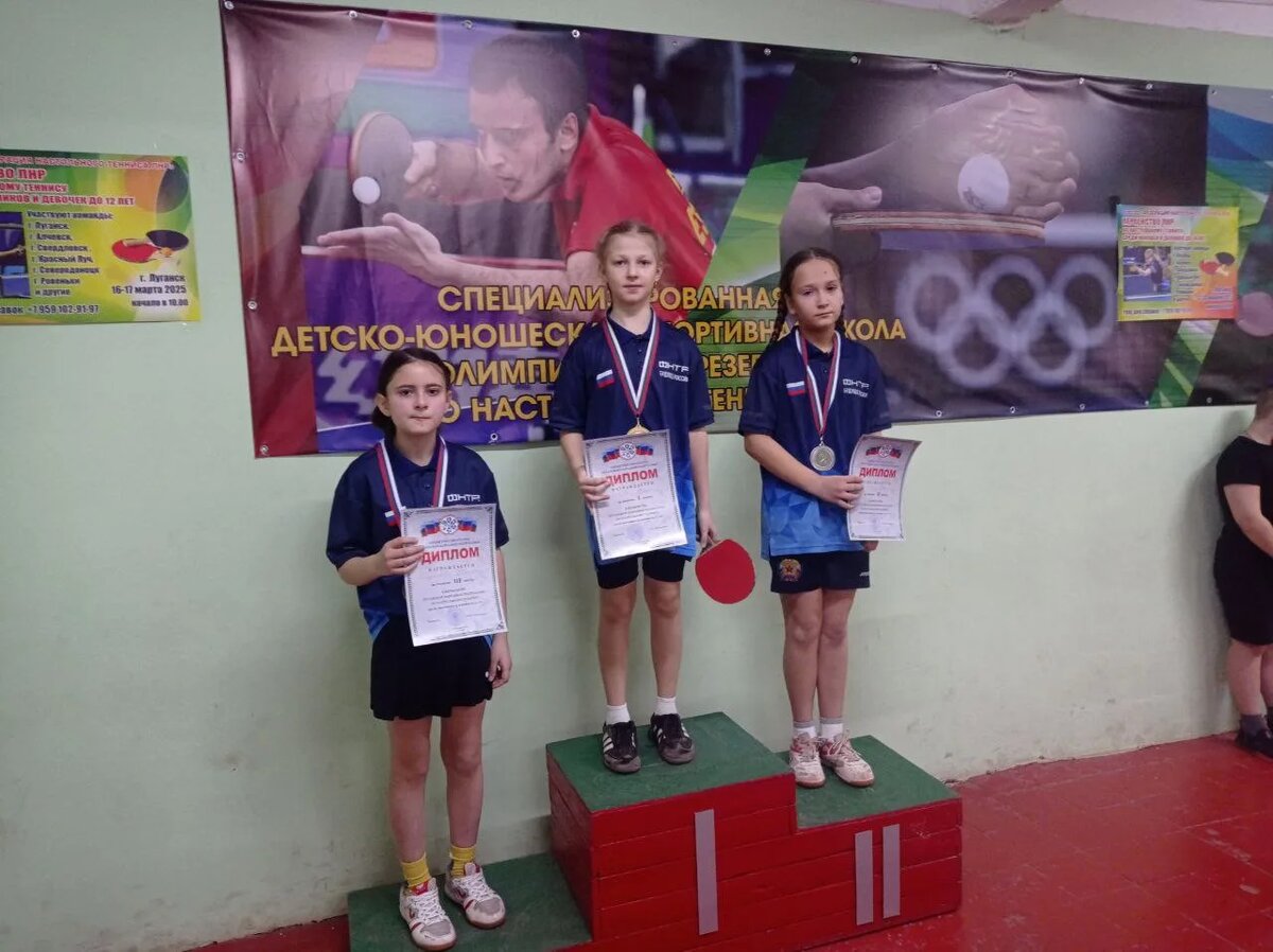 В спортивной школе олимпийского резерва по настольному теннису 24–25 января прошло первенство Луганской Народной Республики среди мальчиков и девочек до 12 лет. В соревнованиях приняли участие 25 юных спортсменов из Луганска, Алчевска, Красного Луча и Свердловска. Призерами среди девочек стали: 1. Милана Гапоненко (Луганск). 2. Анна Дианова (Луганск). 3. Ульяна Балычева (Луганск). Призерами среди мальчиков стали: 1. Олег Потемин (Алчевск). 2. Александр Проскурный (Алчевск). 3. Артем Вовченко (Красный Луч). Как рассказала президент Федерации настольного тенниса ЛНР Нина Окарова, все участники соревнований на первом этапе были распределены на подгруппы в соответствии с рейтингом, набранным на соревнованиях в 2025 году. По два лучших спортсмена из каждой группы вышли в финал. – Мы приняли решение проводить соревнования не по олимпийской системе, не по швейцарской, а предоставить возможность юным теннисистам сыграть максимально возможное количество игр. Спортсменам на этом этапе развития н