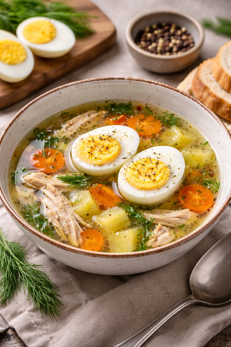 Когда времени на готовку совсем мало, а хочется тёплого, домашнего и полезного, куриный суп выручает всегда. Но однажды я добавила в него обычное отварное яйцо — и теперь готовлю так постоянно. Вкус стал мягче, суп — сытнее, а времени уходит столько же, сколько и раньше.
