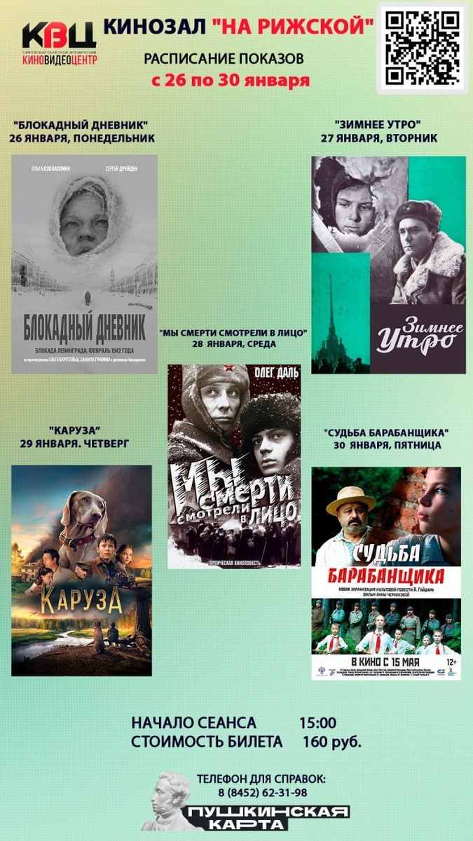 🎥 Кинозал «На Рижской" - зимнее расписание с 26 по 30 января! Ждем всех в Саратовском областном методическом киновидеоцентре!