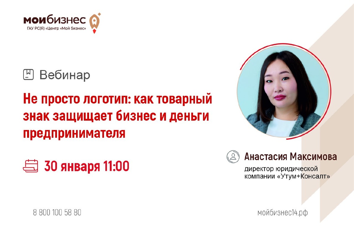 ». 🌟Вебинар предназначен для начинающих и опытных предпринимателей, желающих защитить свой бренд и минимизировать юридические риски. Участники получат полезные знания и практические рекомендации по регистрации и защите товарного знака. ⚡️Программа: •Что такое товарный знак и зачем он нужен вашему бизнесу? •Как зарегистрировать товарный знак самостоятельно? •Какие существуют риски и как избежать нарушений? •Практические советы по защите интеллектуальной собственности. 🎙Спикер: Анастасия Максимова, директор юридической компании «Утум+Консалт» 📆Дата: 30 января ⏰Время: 11.00 🔗Ссылка для регистрации: https://forms.yandex.ru/cloud/6976ff4f1f1eb58659dbc9d3 📲Напоминаем, что канал Центра "Мой бизнес" запущен в МАХе. Подпишитесь, чтобы оставаться в курсе последних новостей! @moibizsakha