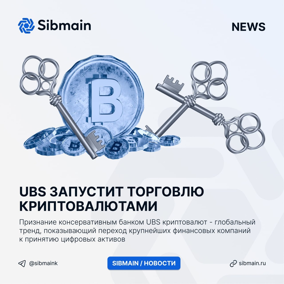 📰📰📰📰 ➡️UBS запустит торговлю криптовалютами Один из крупнейших банков UBS с активами на $6,9 трлн планирует запустить торговлю криптовалютами BTC и ETH. Запустили торговлю криптовалютой: ⏺JPMorgan Chase; ⏺Morgan Stanley; ⏺Goldman Sachs 📍Признание консервативным банком UBS криптовалют - глобальный тренд, показывающий переход крупнейших финансовых компаний к принятию цифровых активов