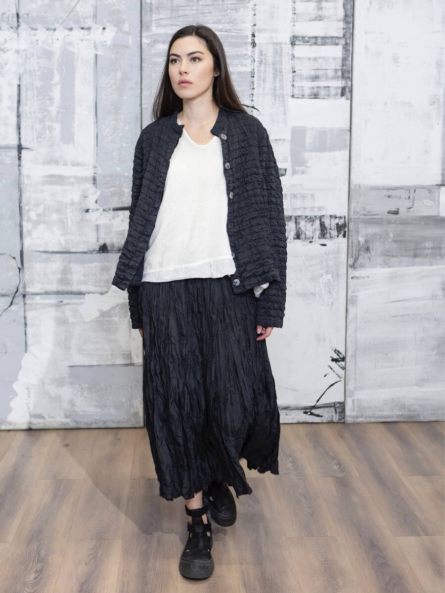 Чёрный жатый или стёганый премиальный шёлк от PRAECHTIG BERLIN — идеальная роскошная база на каждый день