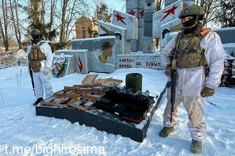 На видео бойцы благодарят нас за помощь и за ними памятник Воинской славы в Казачьей Локне. Это Курская область.
