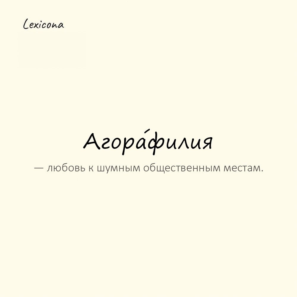 Агора́филия — любовь к шумным общественным местам.