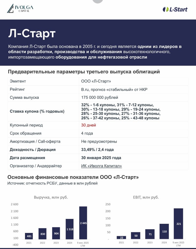 📌 Напомним. Разработчик и производитель оборудования для нефтегазовой отрасли Л-Старт возвращается на первичный рынок.