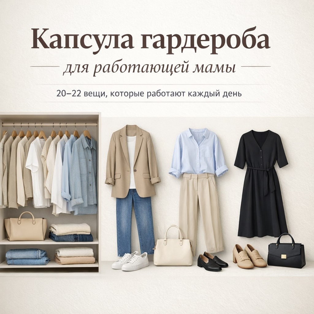 Капсула — это не про моду. Это про уважение к себе, экономию времени и спокойствие по утрам. Выше мы собрали для вас базовую капсулу для женщины, у которой: — дети — работа — реальная жизнь, а не подиум ✔️ сочетаются между собой ✔️ легко хранятся ✔️ выглядят женственно ✔️ не требуют постоянных покупок Когда гардероб выстроен: — ты не думаешь, что надеть — ты не покупаешь лишнее — ты выглядишь собранно даже в обычный день 〰️Но важный момент. 〰️Капсула — это не «разово собрать образы», а система, которая работает дальше. И именно этому мы учим в «Гениальной уборке». Мы: — размусориваем гардероб — определяем цветотип — понимаем, чего реально не хватает, а что лишнее — учимся принципу «одна вещь пришла — одна ушла» — собираем капсулы под разные роли женщины Потому что капсул может быть несколько: — для работы — для дома и детей — для спорта — для свиданий и женственности И это нормально. Главное — чтобы гардероб не возвращался в хаос. Чтобы образы собирались за счет аксессуаров, а не беско