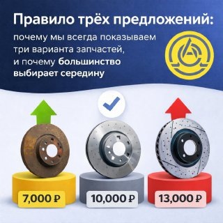 Вы приходите к нам за тормозными колодками, свечами или амортизаторами. И вместо одного ответа получаете три варианта: «бюджетный», «оптимальный» и «премиальный». Это не случайность, а осознанная стратегия, которая называется «правило трёх предложений» или модель «хорошо-лучше-премиум». Она работает не только в нашем магазине, но и в психологии принятия решений. И вот почему это выгодно именно вам, а не только нам. 1. Из чего состоит «тройка» на примере амортизаторов?
