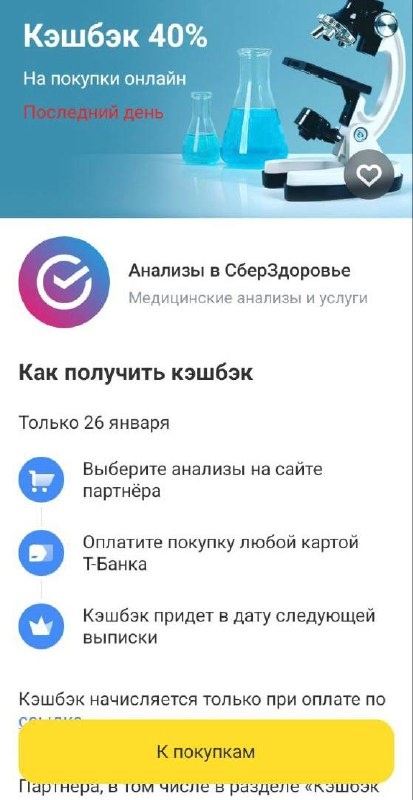 Проверяйте у себя! Для максимальной экономии берем промокоды на Анализы в СберЗдоровье 👉 https://t.me/YulinyZapiski/5455 У кого еще нет карты Т-Банка, оформляем тут 👇 Дебетовая: https://t.me/YulinyZapiski/5248 Кредитная: https://t.me/YulinyZapiski/5288 ✅ Канал по скидкам 🔣 Бот с промокодами