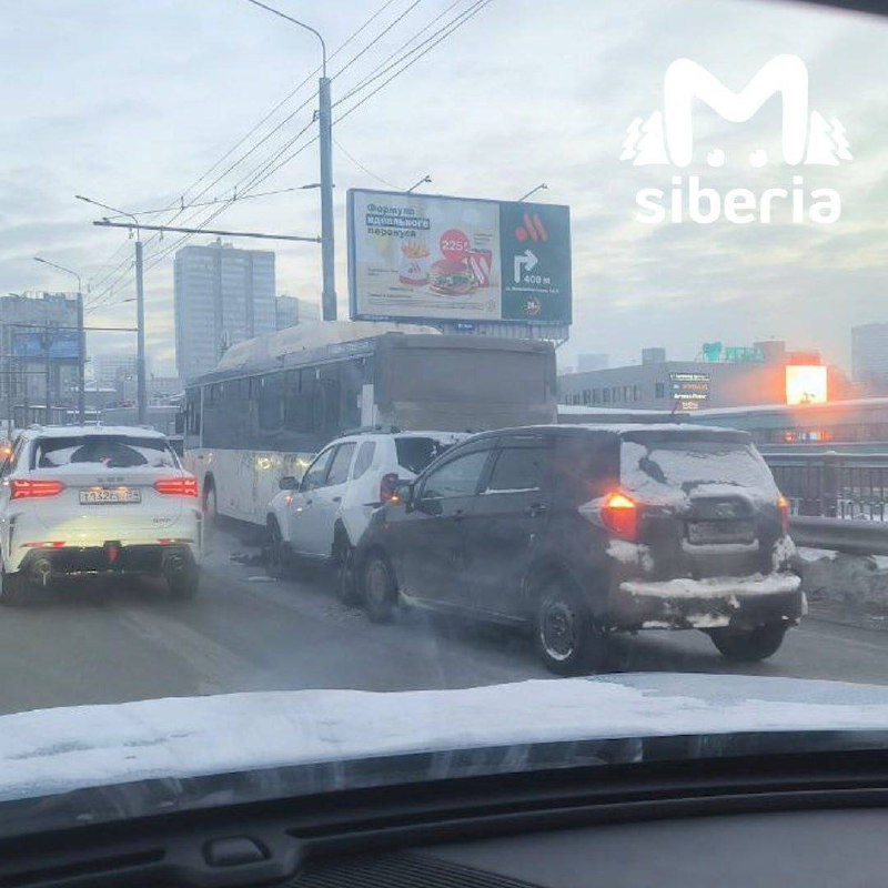 Серьёзные заторы образовались на Бердском шоссе, Октябрьском и Бугринском мостах, на Большевистской и ещё во многих районах города. На дублёре Ипподромской пассажиры были вынуждены толкать застрявший автобус. А у Храма Михаила Архангела не обошлось без ДТП — там столкнулись грузовик и легковое авто. 🤩Новости Сибири | Прислать новость 💜 Мы в MAX