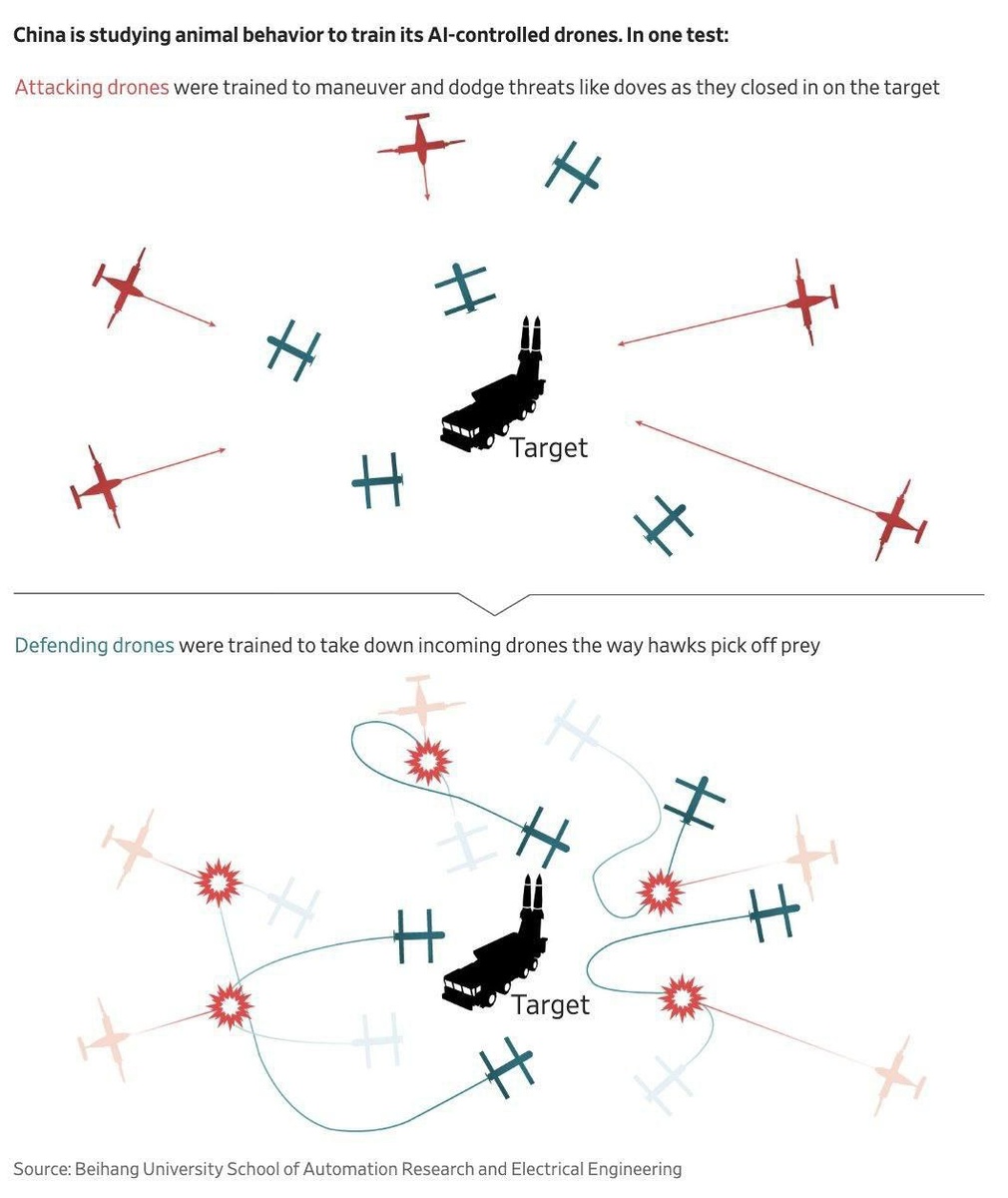 🦾 В Китае боевые дроны с искусственным интеллектом учатся охотиться, как ястребы, и защищаться, как голуби