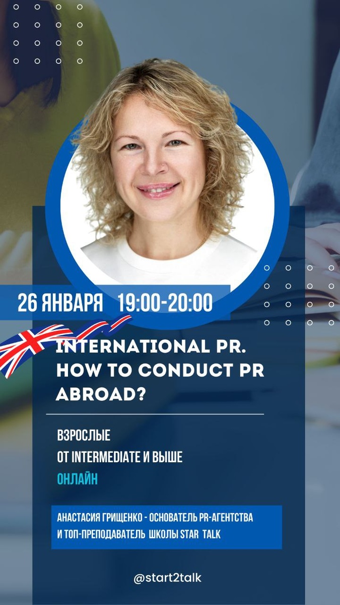 Говорить на нем я начала в Исламабаде (Пакистан), а затем продолжила изучать в ИНЯЗе, присоединив к нему испанский и финский, который пригодился мне при ведении Nokia - работать я начала сразу в ВУЗе. Выступаю в родной школе иностранных языков Startalk. Говорить будем про международный пиар и как вести кампании по продвижению за рубежом. В деталях разберем все тонкости, связанные с менталитетом, культурой и ритмом жизни, которые неожиданно будут играть решающую и первостепенную роль при работе заграницей. Еще можно успеть зарегистрироваться: https://start2talk.t8s.ru/StudyRequest/AddOutside?source=SHP8lAdlcZxlbI0T1HHteDYL9SWYB0eRxt7Esgq76fSlF%2F%2BwAJD%2B9yNFSVpXLiCi