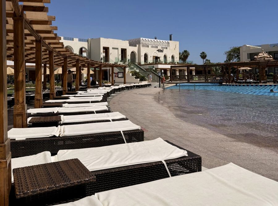 История, которая произошла в одном из популярных пятизвёздочных отелей Шарм-эль-Шейха, быстро разлетелась по туристическим чатам и телеграм-каналам. И, честно, от неё неприятно внутри даже тем, кто просто читает, а не был участником событий. Кто часто отдыхает в отелях, сейчас кивнёт. Сцена борьбы за лежаки знакомая до боли. Занять шезлонг в Египте, Турции, да где угодно - это отдельная форма спорта. Иногда кажется, что за них готовы сражаться больше, чем за лучшие номера. Но в этот раз всё пошло не по плану. Речь идёт об отеле Sunrise Arabian Beach Resort, где отдыхала семья из Москвы с тремя маленькими детьми. Обычный день у бассейна, ничего не предвещало конфликта. Дети купаются, взрослые рядом, вещи лежат на шезлонгах. Классическая курортная картинка. Пока семья была в воде, к зоне отдыха подошла большая компания британских туристов. По словам пострадавших, порядка 15 человек просто заняли шезлонги, на которых уже лежали чужие вещи, и сбросили их в сторону. Когда россияне вернулись