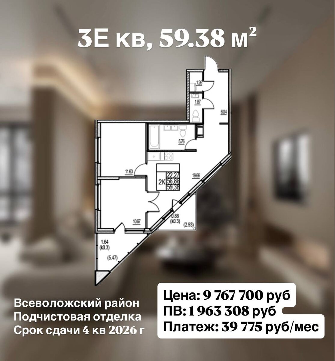 📍Всеволожский район Ⓜ️ Девяткино — 15 мин транспортом • цена — 9 767 700 ₽ • ПВ — 1 963 308 ₽ • ставка — 4.55% • платеж — 39 776 ₽/мес. О ЖК: В жилом комплексе предложено множество планировочных решений: в наличии как квартиры классического типа, так и европланировки. Они имеют просторные площади, увеличенные оконные проемы и потолки высотой три метра. На последних этажах предусмотрены панорамные окна, открытые балконы и лоджии, планировки с эркерами, с зонами для хранения вещей и постирочными. Застройщик передает покупателям квартиры с подготовкой под чистовую отделку. На первых этажах расположены магазины, кофейни, салоны красоты и бытовые сервисы. Для автовладельцев предусмотрен подземный паркинг. Также к пользованию предлагаются индивидуальные кладовые для хранения сезонных вещей. Дворы огорожены, озеленены по индивидуальному ландшафтному проекту. Также предусмотрены игровые и спортивные площадки. Для резидентов доступно пространство для развития, общения и досуга – "Club ID".
