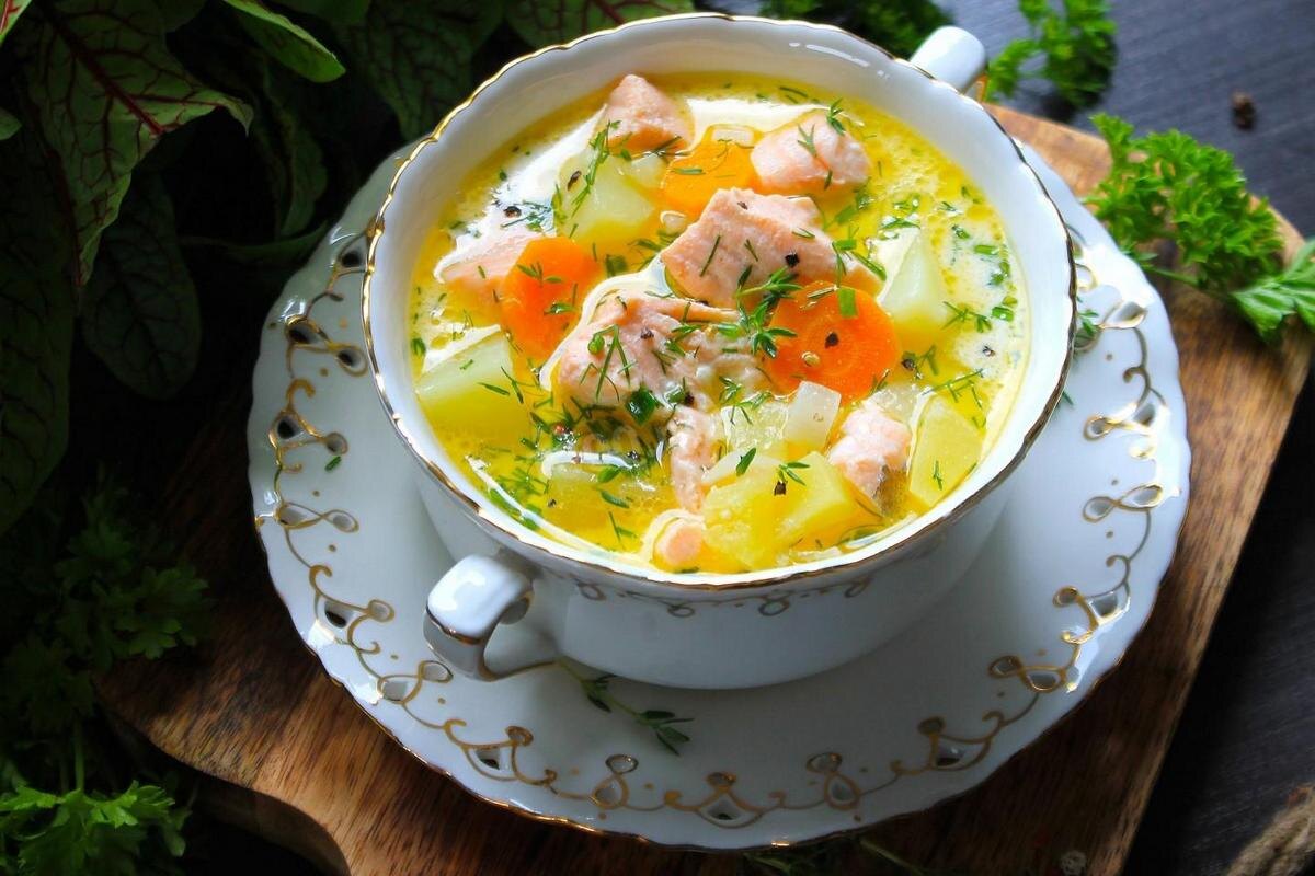 Уха из красной рыбы со сливками — нежный и ароматный суп, который покоряет с первой ложки