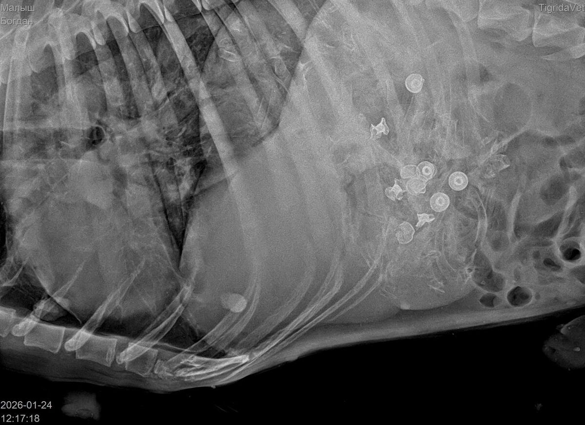 Со слов врача, внутри было множество пуль. По его подсчётам уже их видно было 9. А возможно и больше.