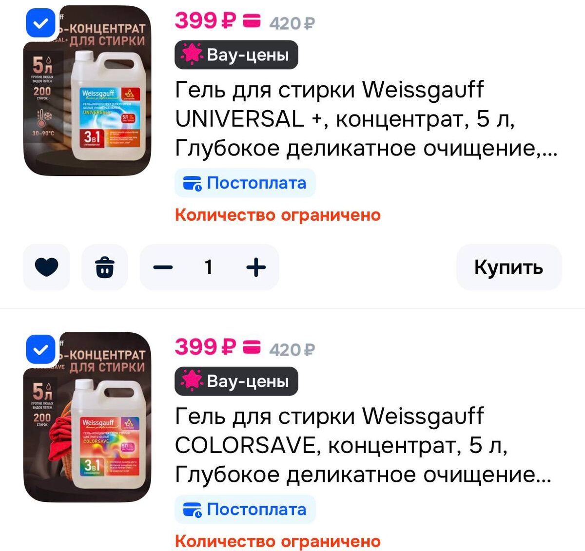 😀😀😀Гель для стирки Weissgauff, концентрат, 5 л