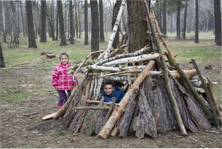 Современные дети проводят в помещениях 90% времени. А строительство шалаша в саду или лесу возвращает естественную связь с природой.