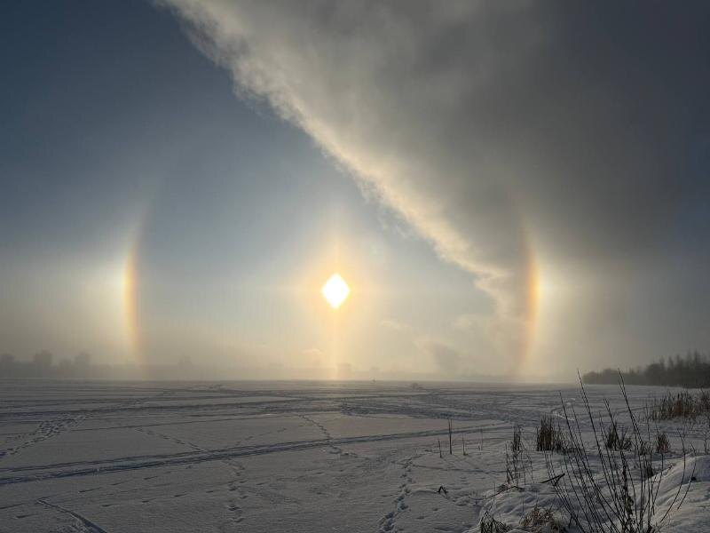 Оно возникает из-за сильного мороза В небе над Воронежем заметили необычное и крайне красивое природное явления. Встретить его можно только в морозные и ясные дни. Речь идет о солнечном гало. Оно характеризуется возникновением вторичного свечения вокруг источника света, как правило, имеющее форму круга, кольца, дуги, светового столба или «алмазной пыли». Чаще всего гало возникают вокруг яркого солнца или луны. Существует множество типов гало, но все они, как правило, вызваны отражением света во взвеси ледяных кристаллов в перистых облаках. Источник вторичного свечения находится в верхних слоях тропосферы, примерно на высоте в 5-10 километров. Вид гало зависит от формы и расположения кристаллов. Отражённый и преломлённый свет нередко разлагается в богатый цветовой спектр, делающий его похожим на радугу. Но иногда, в особенно морозную погоду, возможно появление гало и на низкой высоте. Судя по видео и фото, которые нам прислали читатели с Петровской набережной, это именно тот случай. Отм