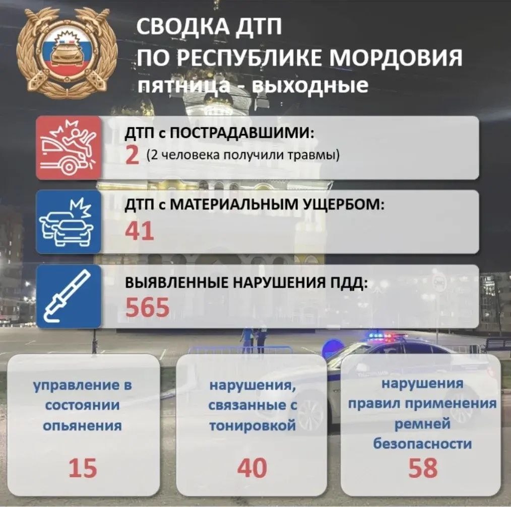 👮♀️ Обстановка с аварийностью на дорогах Мордовии и нарушениями ПДД с 23 по 25 января 2026 года