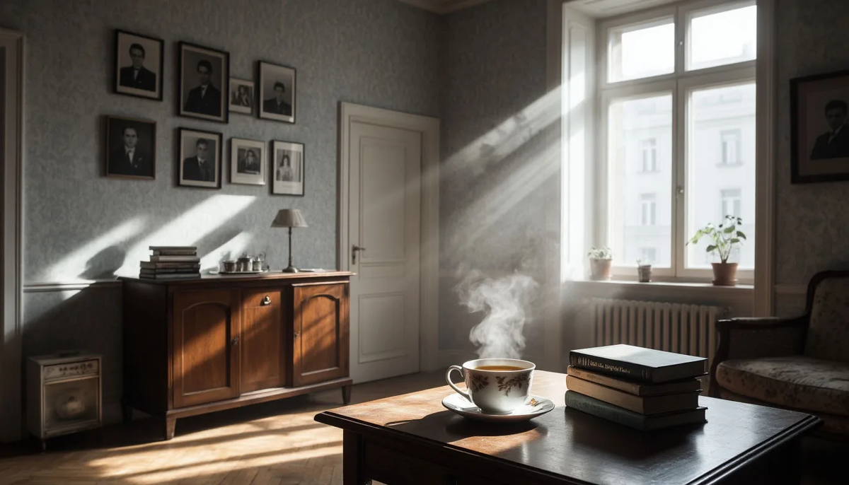 Антонина в последний раз окинула взглядом свою квартиру. Сервант с парадным сервизом, который доставали лишь по самым торжественным случаям. Книжные полки, где Пушкин соседствовал с Чеховым, а учительские методички — с потрёпанными, зачитанными до дыр томиками Ахматовой. Старые чёрно-белые фотографии на стенах: вот Глеб Андреевич с первым своим выпуском, вот она сама, молодая, с тугой русой косой, обёрнутой вокруг головы, принимает скромный букет от смущённых учеников.