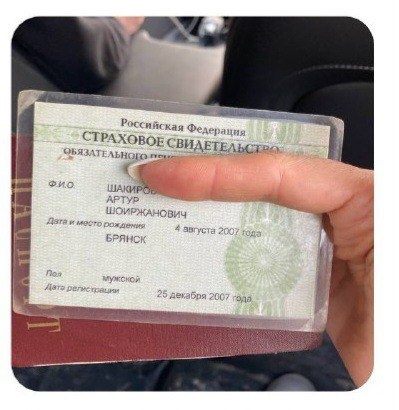 Найден паспорт и СНИЛС на имя Шакиров Артур