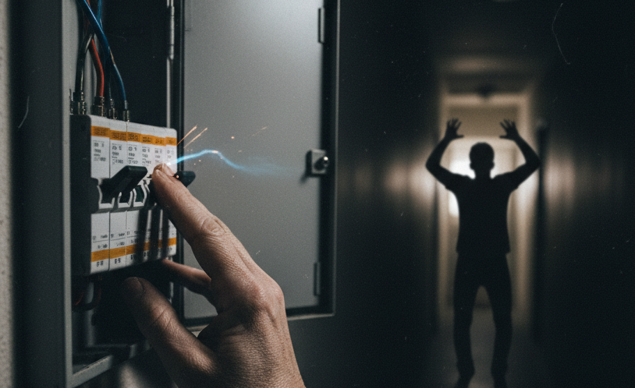 Что делает эта святая женщина? Она не стала кричать, не стала плакать. Она молча вышла в подъезд, подошла к электрическому щитку и... Щёлк! Один тумблер вниз. Тот самый, что отвечает за розетки в комнате сына.