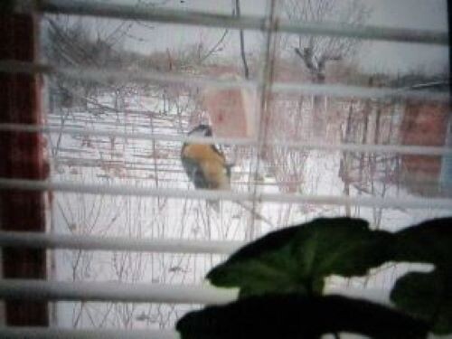 Если цыплят считают по осени , то синичек легче считать с появлением первого снега, когда опавшая листва оголяет деревья и кустарники. И к этому событию мы с хозяйкой вынимаем из закромов заготовленные с осени отходы от лущения грецких орехов, подсолнухов, некоторых ягод... и покупаем сало. Я предполагаю, что сало (которое не замерзает на морозе) синички употребляют по необходимости. Я вот, например, не люблю сало, но при отсутствии другой закуски потребляю его с удовольствием. Угощение синичкам можно, конечно, расположить прямо на кустах или деревьях, но лучше под навесом (если есть такой) вдоль дома, чтобы можно было любоваться синичками прямо из кухонного окна (или из спальни). сало на проволоке а зерно можно в старый шлем.. или в пластмассовые кормушки... И вот, в такую зимнюю пору сосед, проходя мимо зашел ко мне на минутку, засвидетельствовать свое почтение и выпить по сто грамм, для чего захватил с собой пару яблок - приятно закусывать плодами со своей фазенды. И неожиданно раз