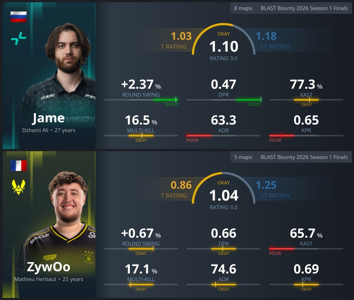 Статистика «Игрока года» за 8 карта BLAST Bouny 2026