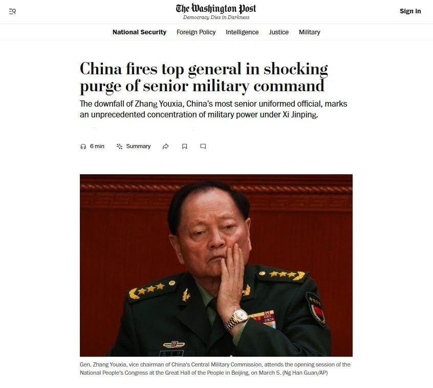 Высокопоставленного китайского генерала Чжан Юся обвинили в коррупции и госизмене. Он обвиняется в передаче США данных о ядерной программе Китая, пишет WSJ.