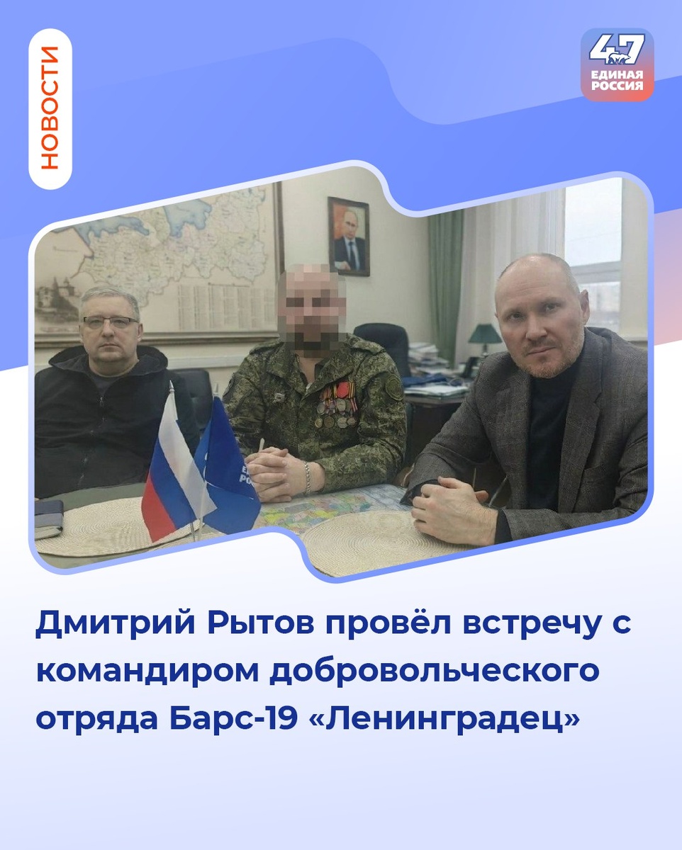 командиром добровольческого отряда Барс-19 «Ленинградец». Во время беседы они обсудили текущую помощь бойцам на фронте и реализацию народной программы партии, которая направлена на поддержку нуждающихся и включает инициативы по обеспечению бойцов всем необходимым, а также помощь их семьям и пострадавшим. 👍 Решено продолжать совместную работу для усиления поддержки наших защитников. #ЕР47 #ЕдинаяРоссия #ЕРЛенобласть