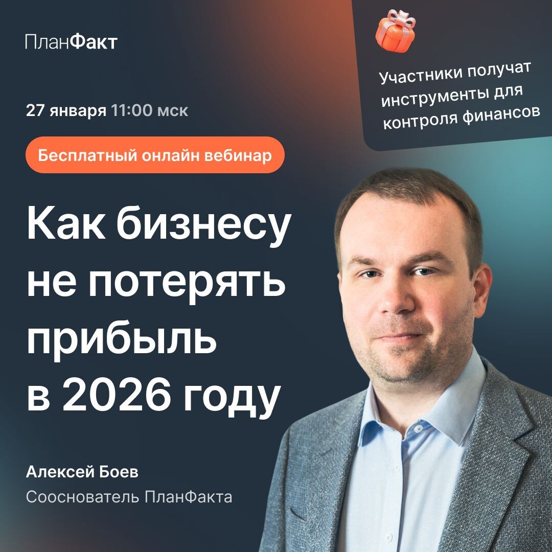 » Зарегистрироваться по ссылке Сооснователь ПланФакта, Алексей Боев, поделится опытом, как взять финансы под контроль и сохранить прибыль на фоне роста затрат и налоговой нагрузки в 2026 году. Обсудим: — Что делать бизнесу, чтобы выжить — Как поэтапно выстроить учет финансов — Как увеличить прибыль — Как понять, какие расходы стоит сокращать, а какие нет — Как повысить устойчивость бизнеса — Как не попадать в кассовые разрывы — Как спрогнозировать бюджет Присоединяйтесь! Участники получат не только ценные знания, но и инструменты для контроля финансов!