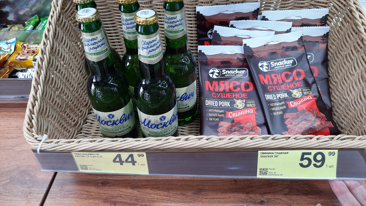 Пиво Москвич светлое пастеризованное стекло 4,3% 0.33 л цена 44.99 рублей.
