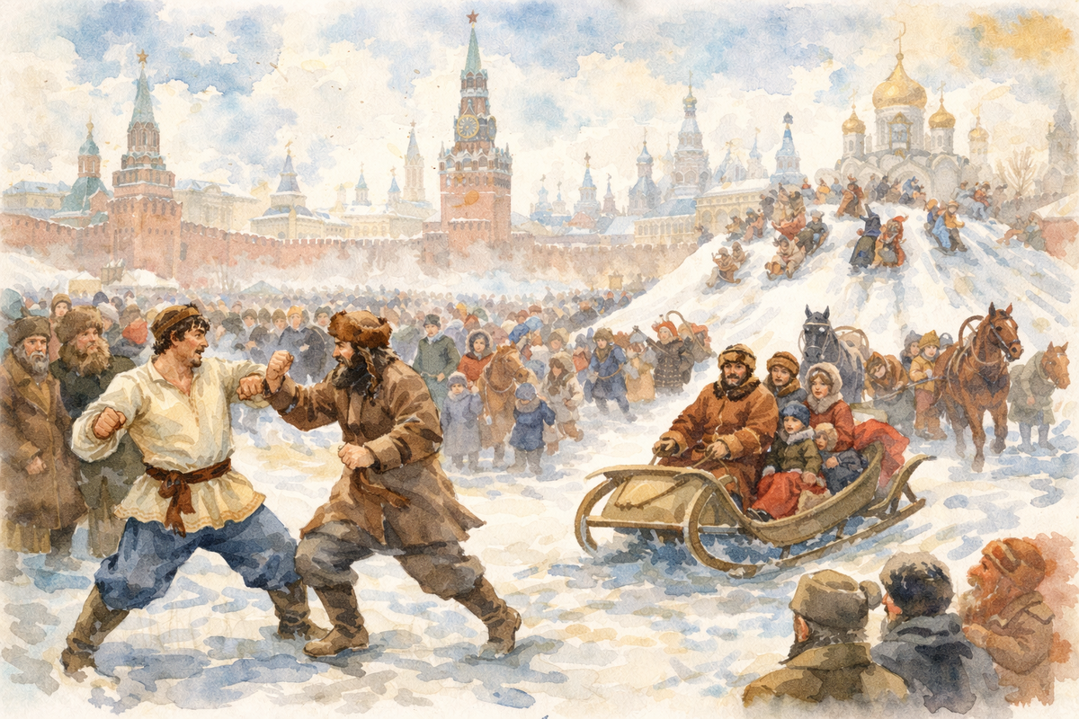 Для жителей Европы XIX века Россия во многом оставалась загадкой. Особенно поражали иностранцев русские шумные, многолюдные праздники, непривычные по размаху и эмоциям. И Масленица в Москве занимала среди них особое место. Путешественники, дипломаты и купцы, бывавшие в России, часто оставляли подробные описания масленичных дней. Эти записи сохранились в мемуарах, путевых заметках и письмах и сегодня позволяют увидеть праздник глазами человека «со стороны». Многие иностранцы отмечали прежде всего масштаб происходящего. Французские и немецкие авторы писали, что в масленичную неделю Москва словно выходила на улицы целиком. Площади, набережные, дороги за городом наполнялись людьми, санями, смехом и шумом. Гуляли не «по расписанию», а всем городом сразу. Особое впечатление производили народные забавы, некоторые из которых вызывали у иностранцев одновременно удивление и тревогу. Например, кулачные бои, которые устраивались во время Масленицы, часто описывались как зрелище дикое и непонятное