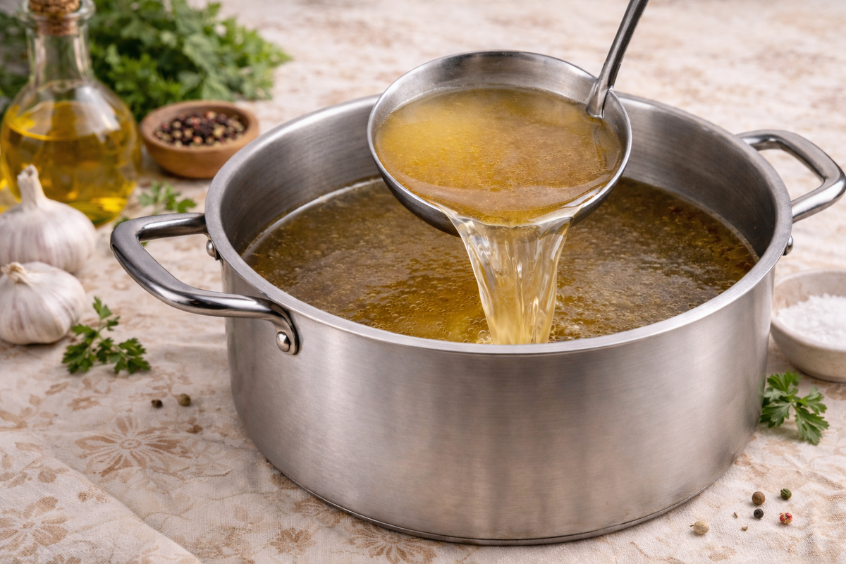 На практике: 150–250 мл тёплого бульона — как отдельный приём или как база для супа и тушёных блюд. В таком формате бульон остаётся едой и даёт удобный способ добрать белок.