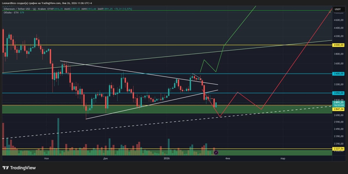 #мнениепорынку ☄️☄️☄️ ⚠️Прошло 5 дней с крайнего прикрепленного разбора рынка на данных графиках с этой же разметкой! А до этого был еще один анализ, который также продолжает отработку на наших с вами глазах. Это я к тому, что ТА, так или иначе продолжает подтверждать свою силу и надежность, по сравнением с тем шумом и потоками лапши, которые нам ежедневно льет в уши новостной фон, и различные "граммофоны" пенсионного возраста!! ❓ Ок, продолжим анализировать и попробуем понять, что нас может ожидать на этой неделе, исходя из уровней и зон, которые BTC and ETH уже протестировали?? 1️⃣ Итак, видим идеальный ожидаемый ретест уровня 2800 = верхней границы блока поддержки. Можно сказать: нажали на кнопку, ждем реакции насколько под ней сильна пружина и насколько глубоко ее можно продавить? Совсем рядом под ногами средняя линия канала и как минимум короткий сквиз в эту зону (под неё) прям просится. Я даже думаю, что у ММ сегодня повышенное слюна выделение, в соответствии с данной картинк