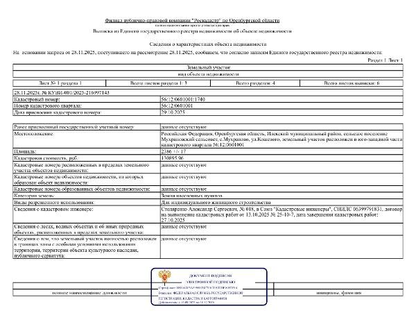 Местоположение земельного участка: Российская Федерация, Оренбургская область, Илекский муниципальный район, сельское поселение Мухрановский сельсовет, с. Мухраново, ул. Кошевого, земельный участок расположен в юго-западной части кадастрового квартала 56:12:0601001. Площадь: 2386 кв.м. Вид разрешенного использования: Для индивидуального жилищного строительства. Категория земель: земли населенных пунктов. Канал: Госземля Оренбургская область Область: обл Оренбургская Район: м.р-н Илекский Населенный пункт: с.п. Мухрановский сельсовет, с Мухраново Локация: Смотреть на карте ВРИ: Для индивидуального жилищного строительства Кадастровый номер: 56:12:0601001:1740 Кадастровая стоимость: - Вид сделки: Продажа Площадь: 2386 м² Начальная цена: 134450.00 руб. Дата завершения: 09.02.2026 Подробнее: ГИС ТОРГИ #госземля #земляотгосударства #земля #земельныйучасток #земельныеторги #торги #аукцион #продажаземли #продажа #оренбургскаяобласть